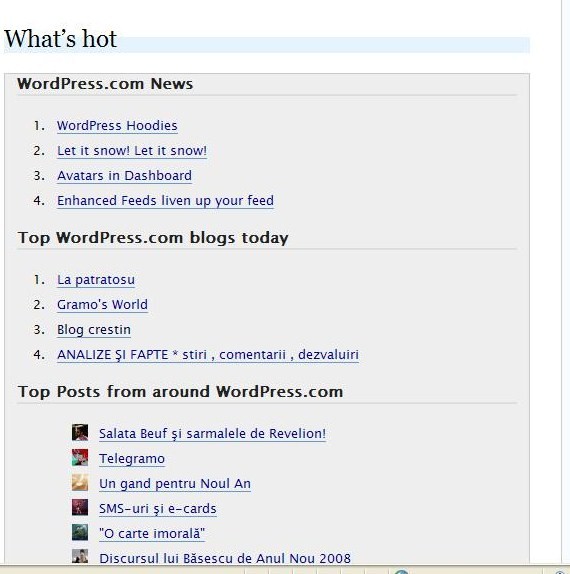 Nu pot sa trec peste bucuria pe care mi-au facut-o blogarii de anul nou. Nu ma asteptam asa de sus dar atentia voastra ma dus pana pe locul trei.