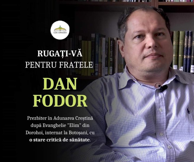 Vă rog să ne rugăm pentru Dan Fodor din Dorohoi a fost transferat de la Botoșani la Iași are nevoie mai mult ca oricând de rugăciunile noastre și Domnul să aibă milă și să se îndure! Test pozitiv